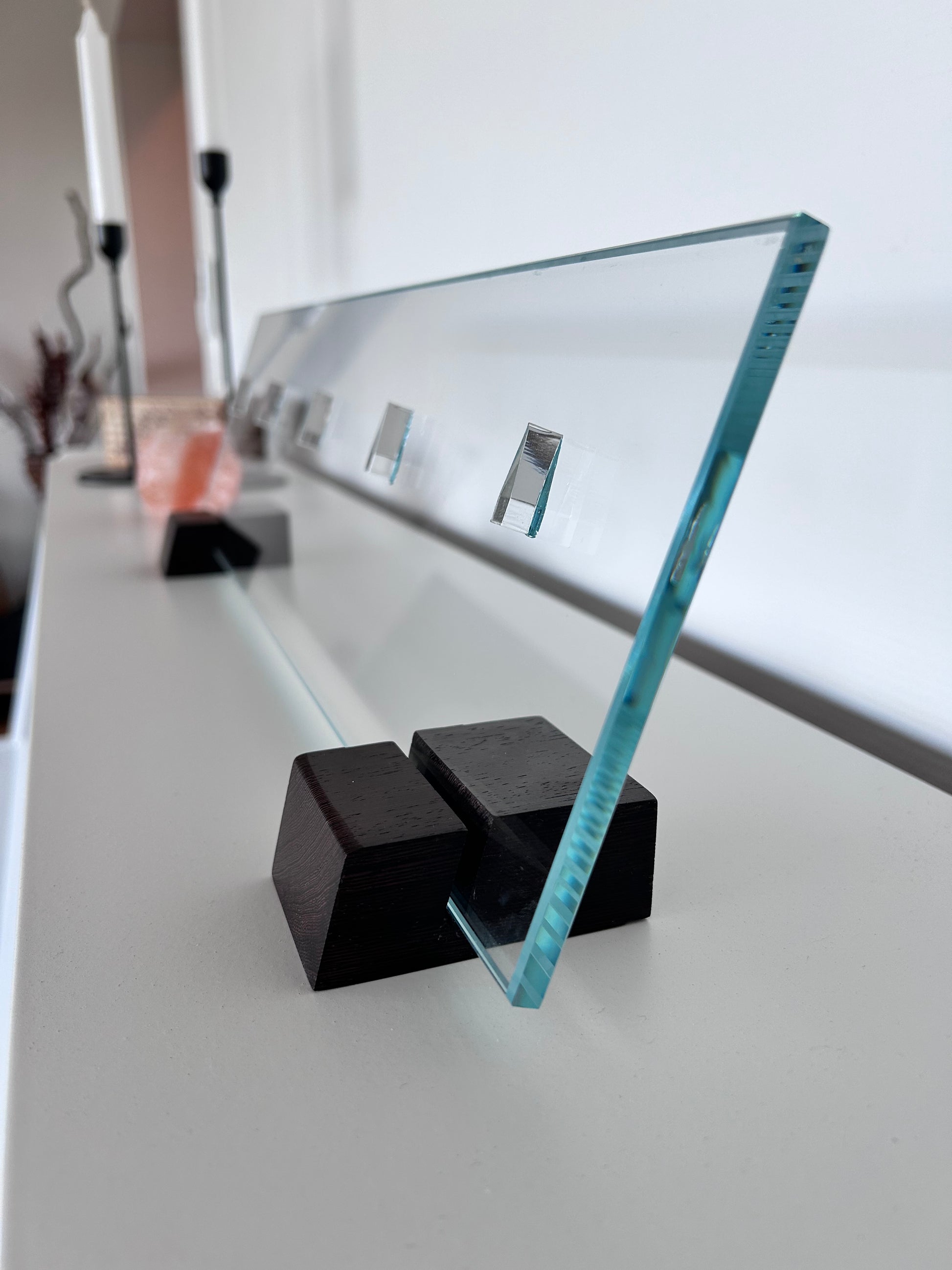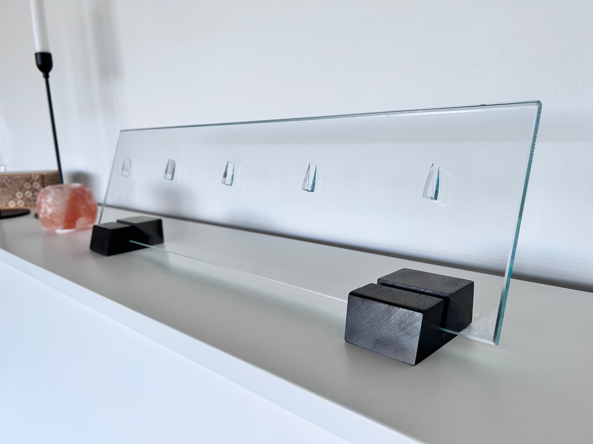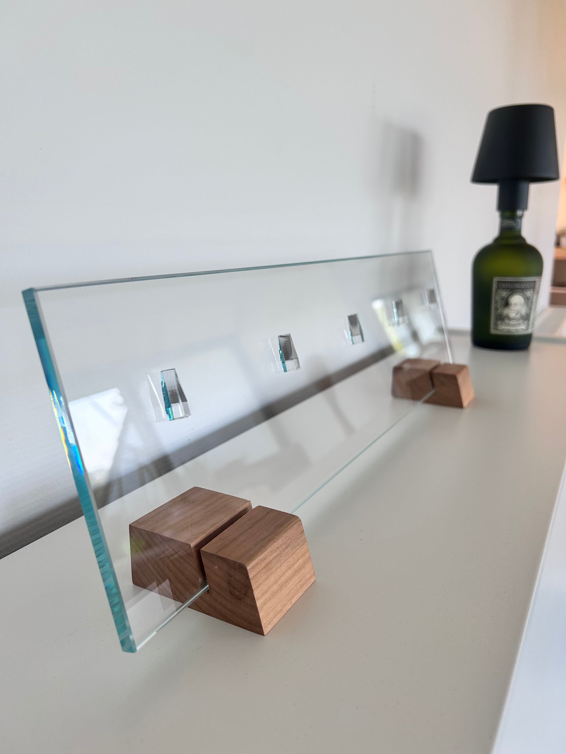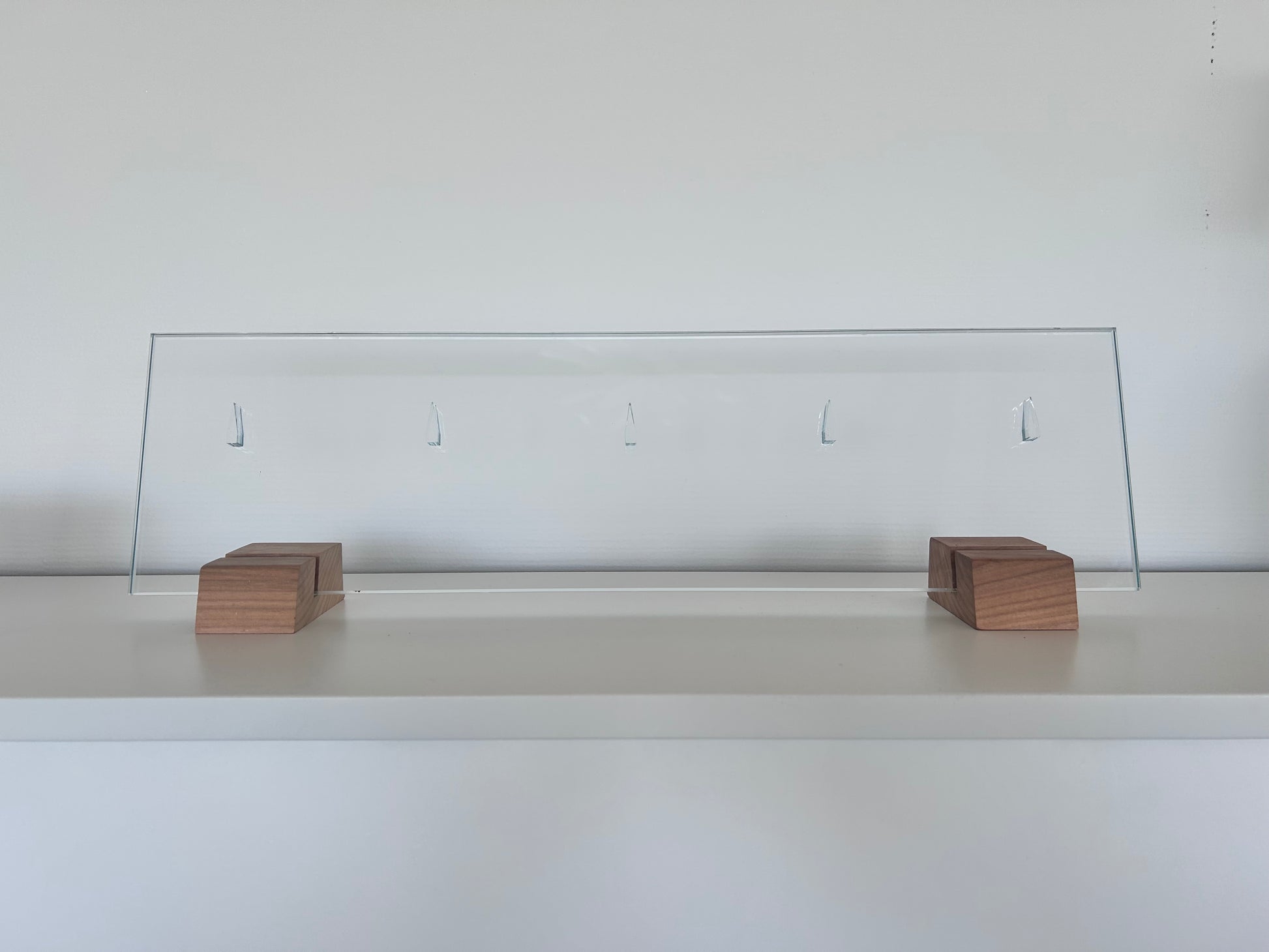 These Stands fit 5 Tsuba. Available only in a clear with massive 8 mm thick glass backplate. The wooden base is movable. There are two versions available. One cherry and one in wenge wood. 100% handmade in France.