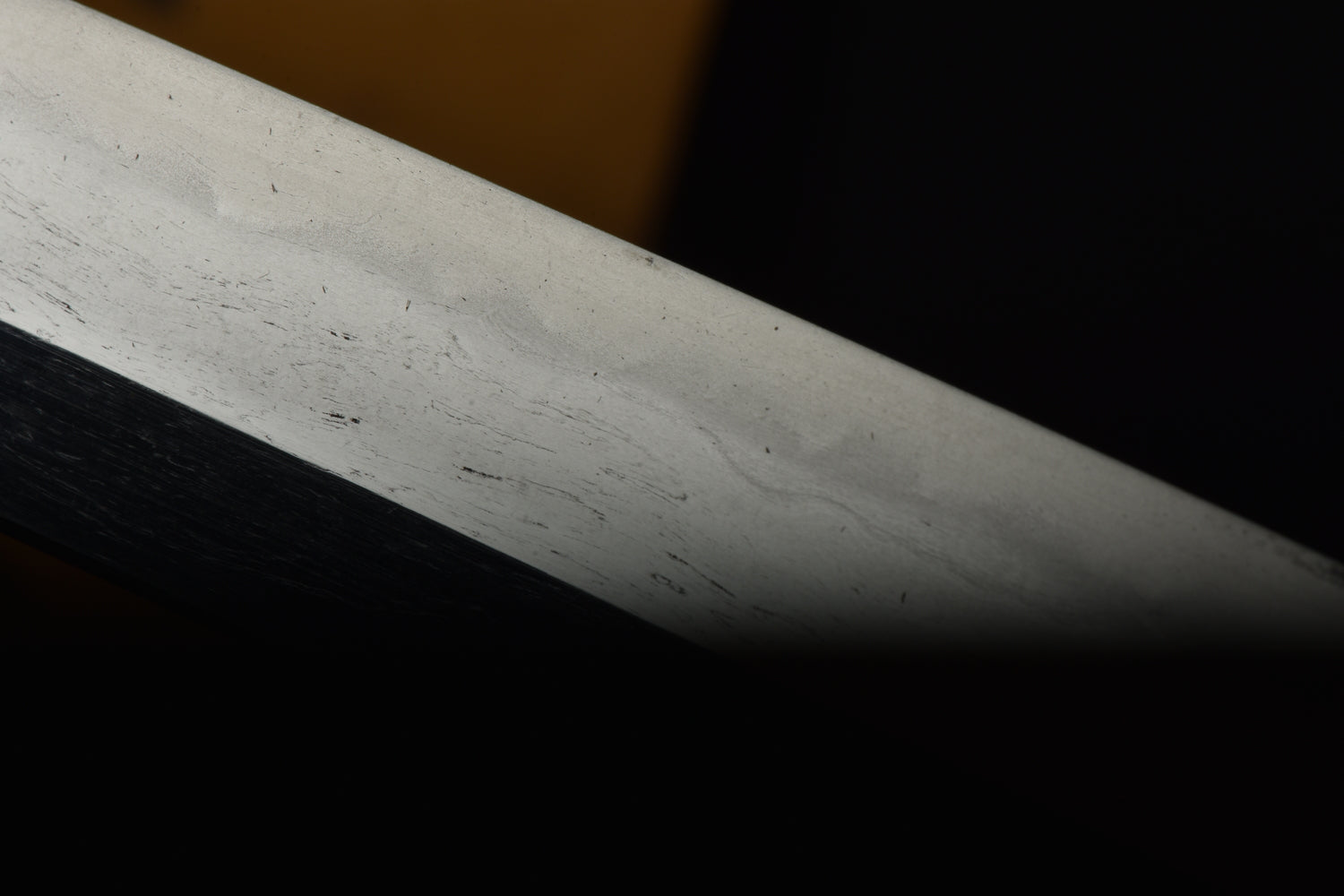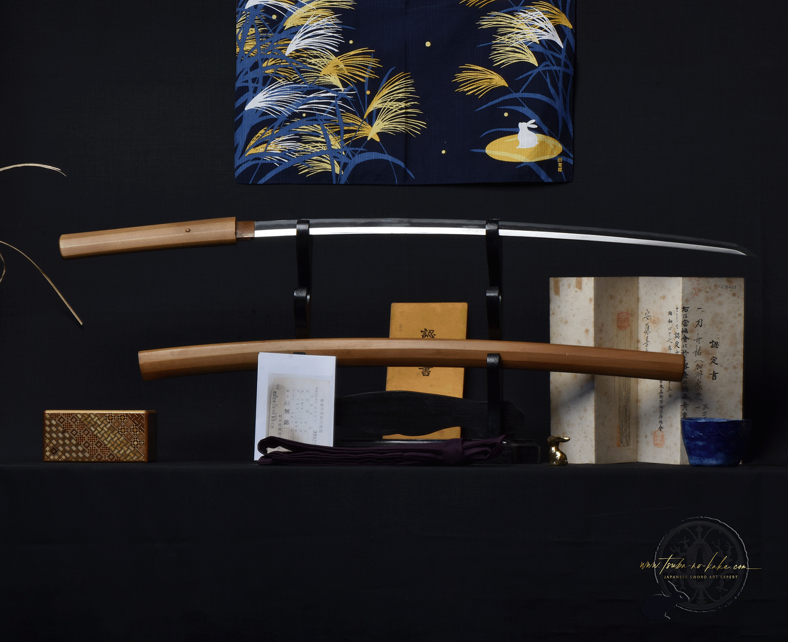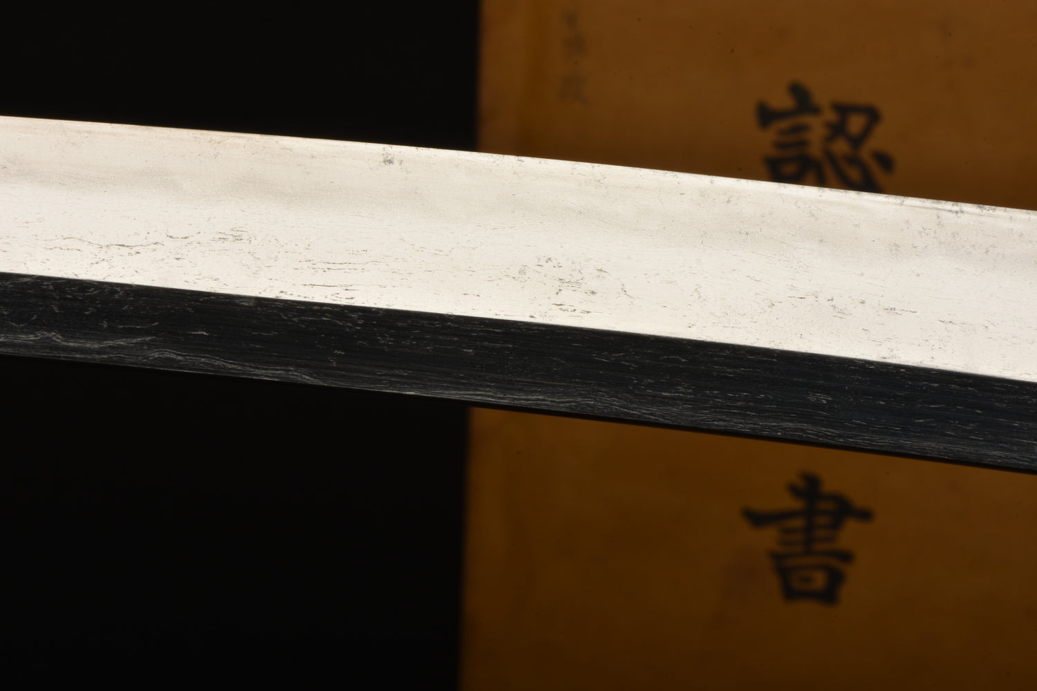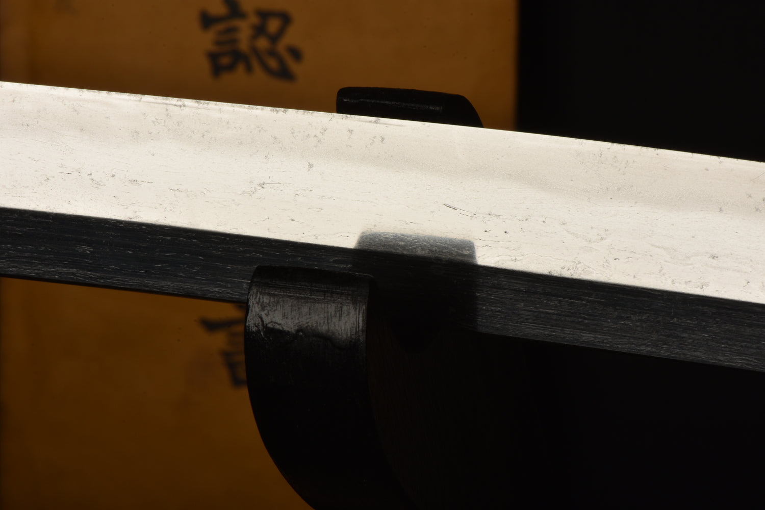 IETSUGU (家次), Kōji (弘治, 1555-1558), Kaga – “Ietsugu” (家次), “Kashū-jū Fujiwara Ason Ietsugu saku” (加州住藤原朝臣家次作), “Kashū Fujiwara Ietsugu saku” (加州藤原家次作), Hashizume school, Kaga-Aoe, we know blades from the Tenbun (天文, 1532-1555) to the Eiroku era (永禄, 1558-1570), suguha mixed with chōji, gunome-midare, wazamono, chū-jō-saku