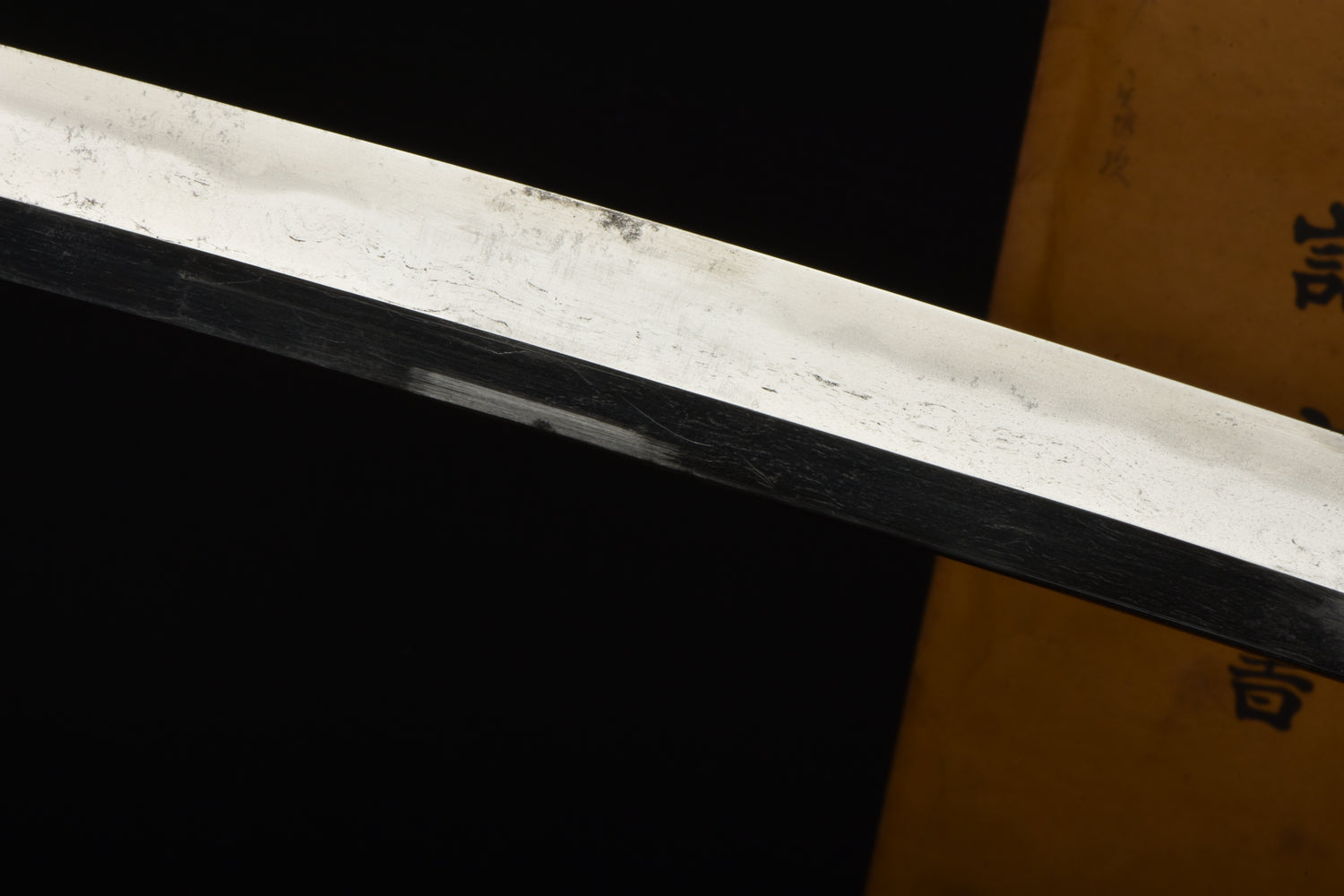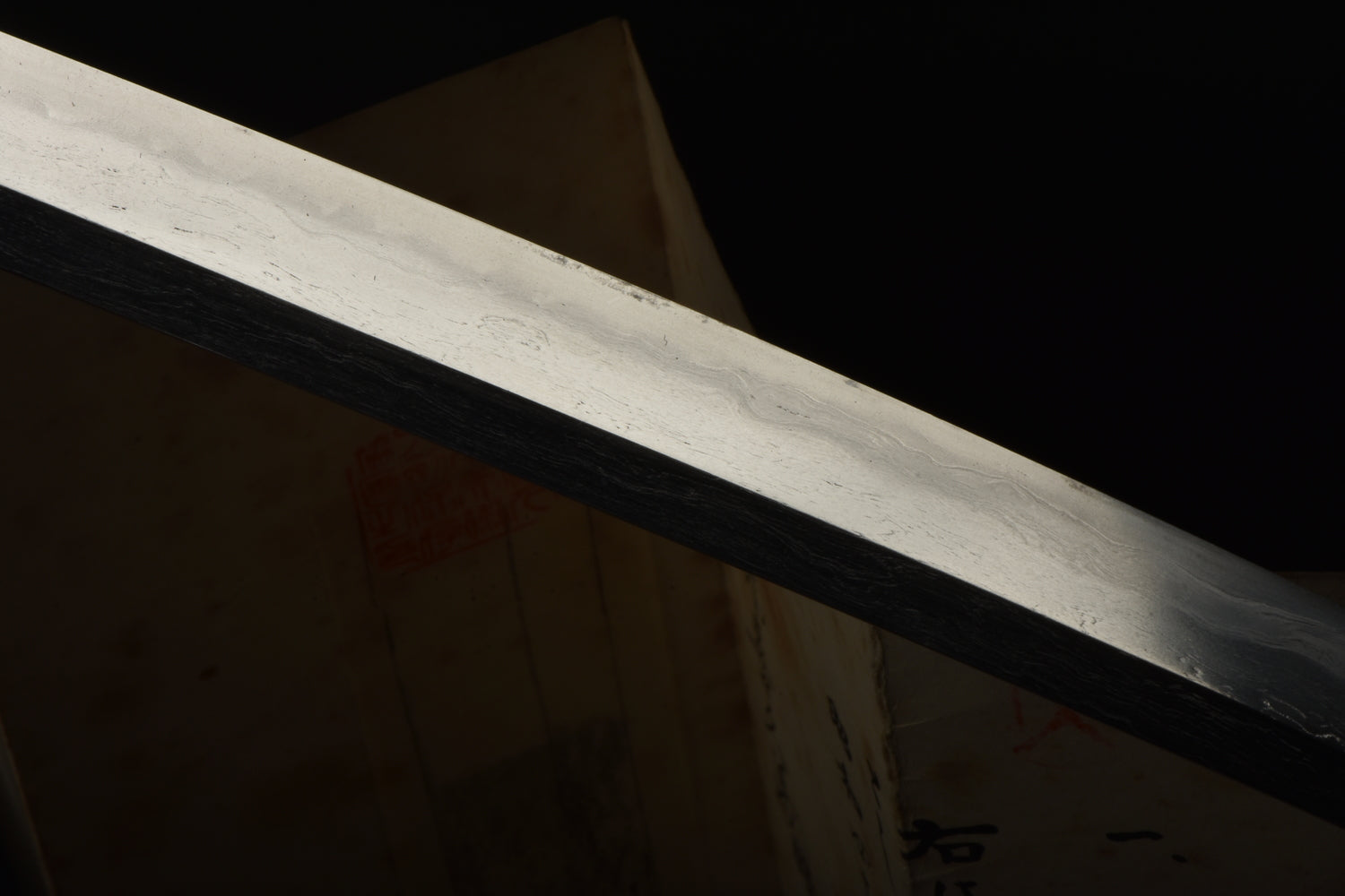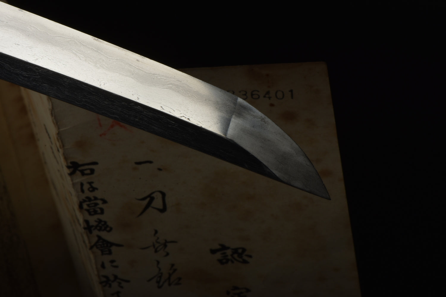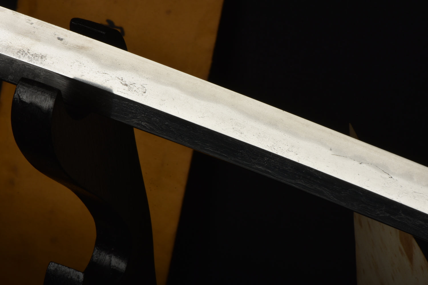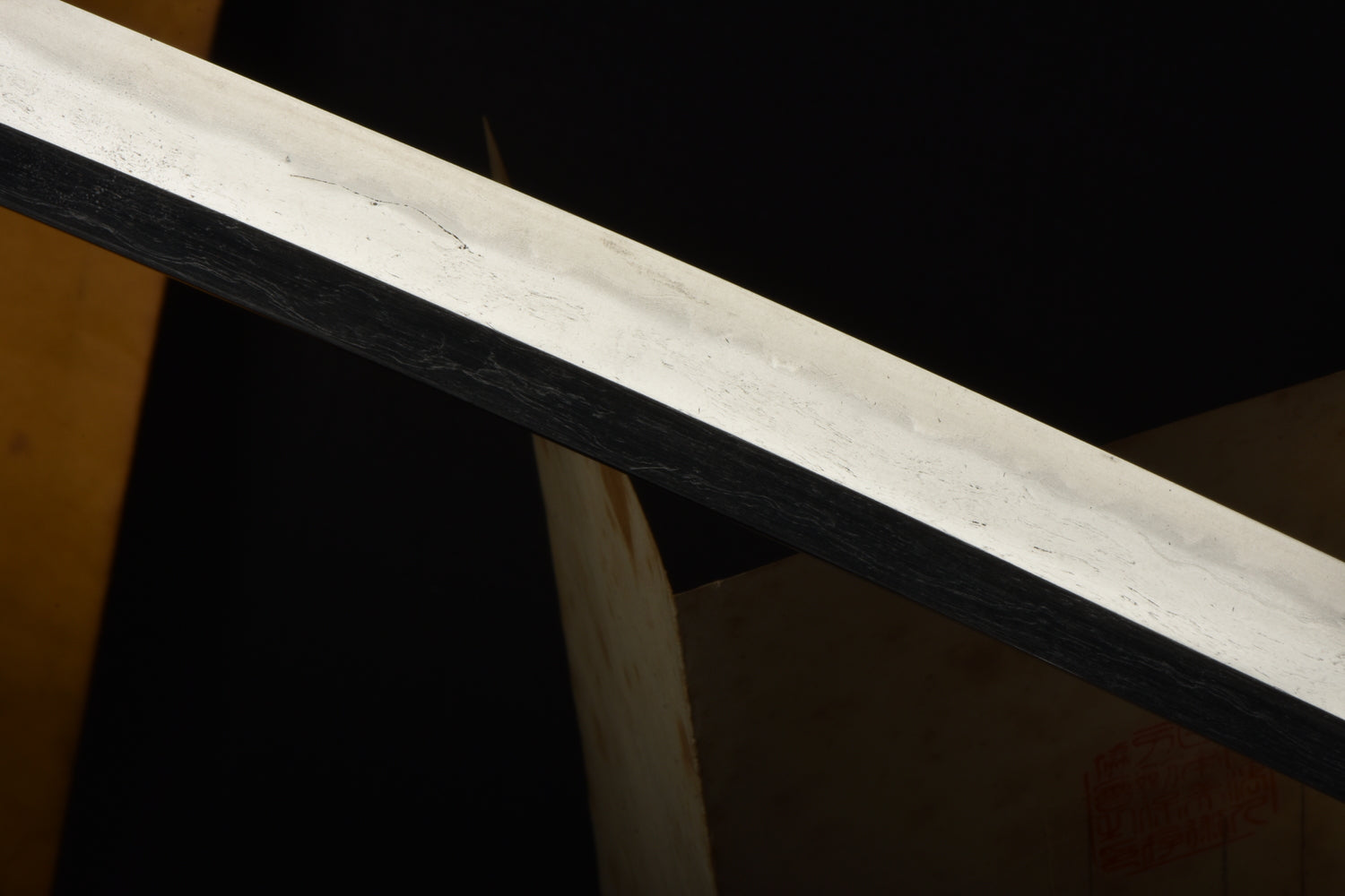 IETSUGU (家次), Kōji (弘治, 1555-1558), Kaga – “Ietsugu” (家次), “Kashū-jū Fujiwara Ason Ietsugu saku” (加州住藤原朝臣家次作), “Kashū Fujiwara Ietsugu saku” (加州藤原家次作), Hashizume school, Kaga-Aoe, we know blades from the Tenbun (天文, 1532-1555) to the Eiroku era (永禄, 1558-1570), suguha mixed with chōji, gunome-midare, wazamono, chū-jō-saku