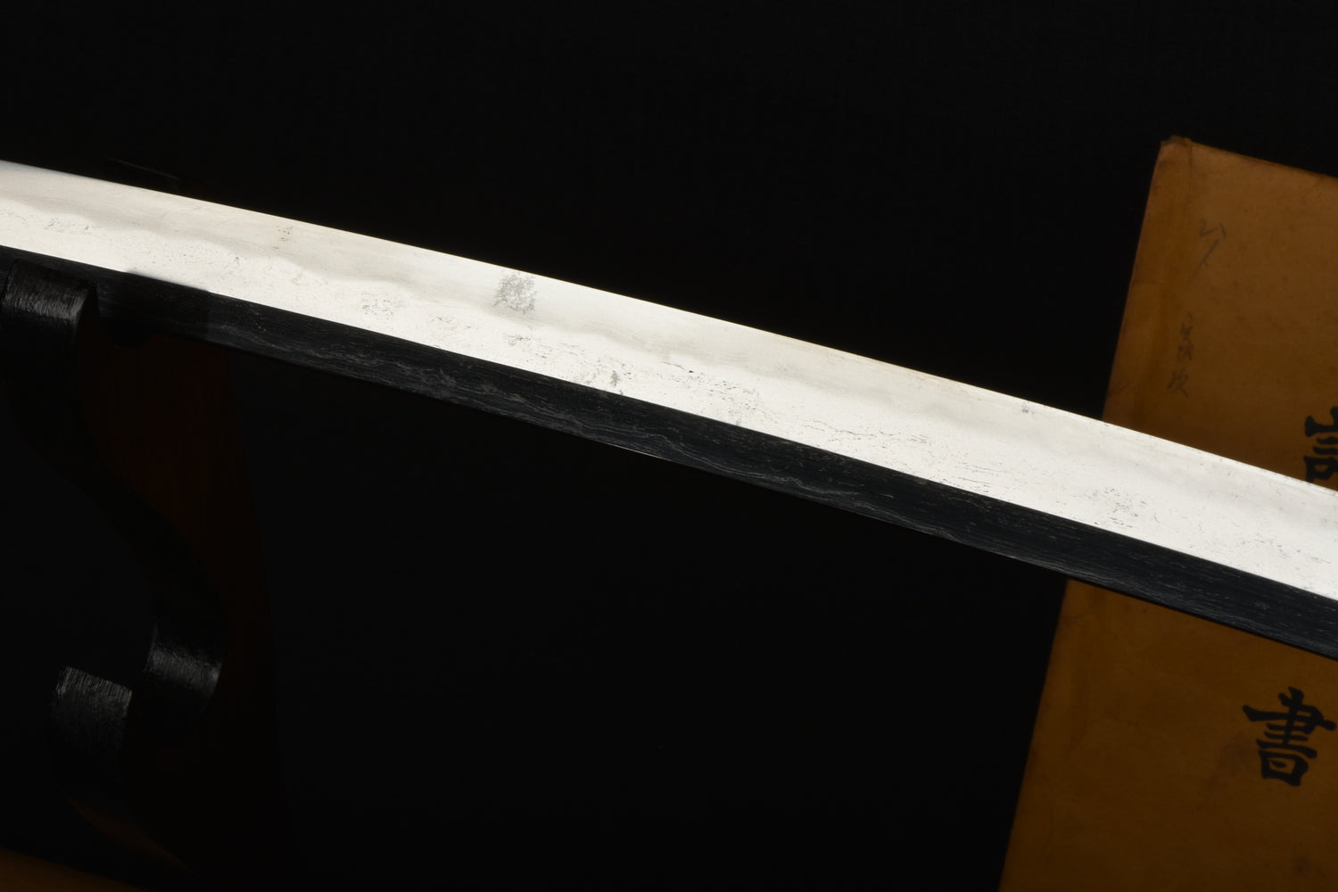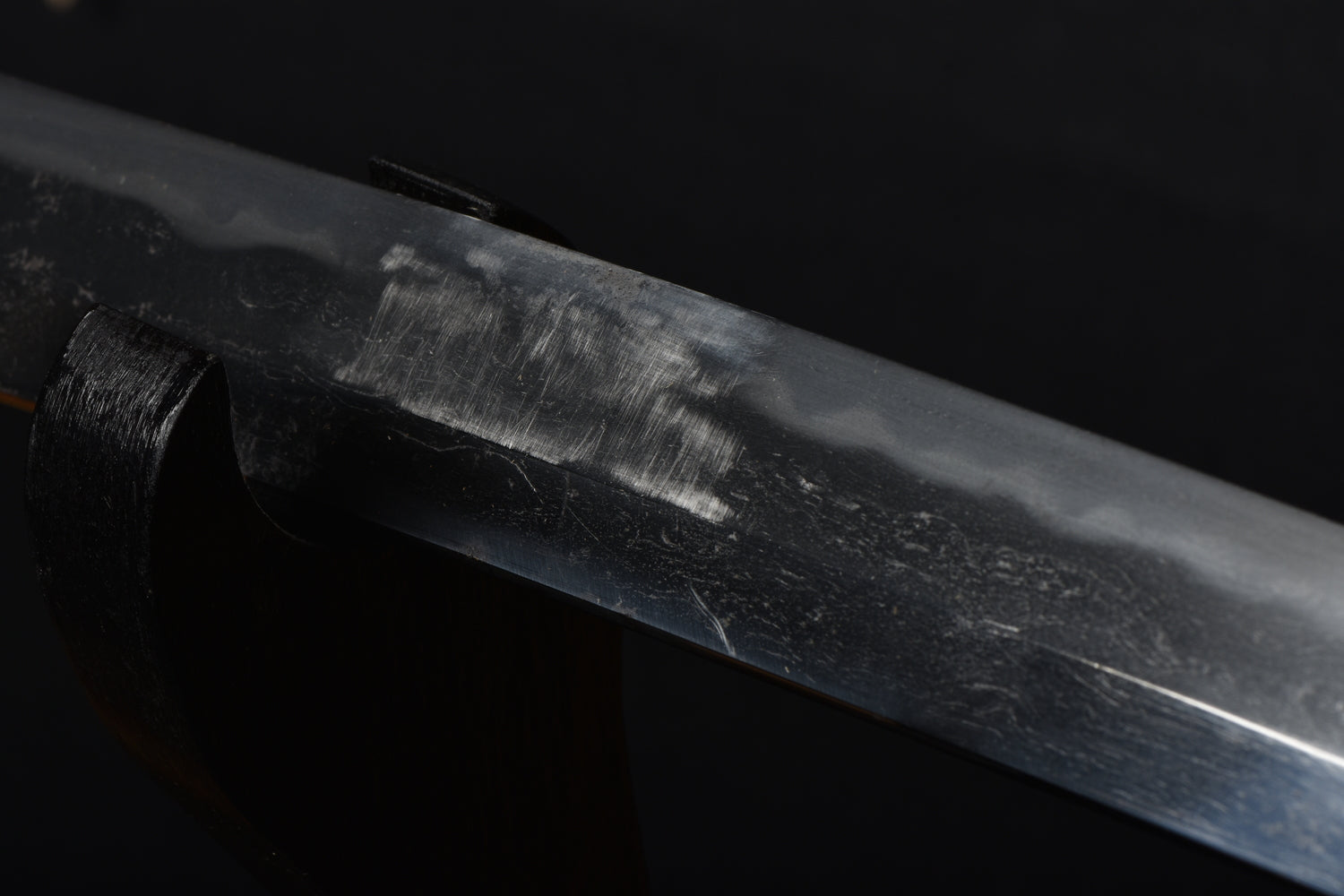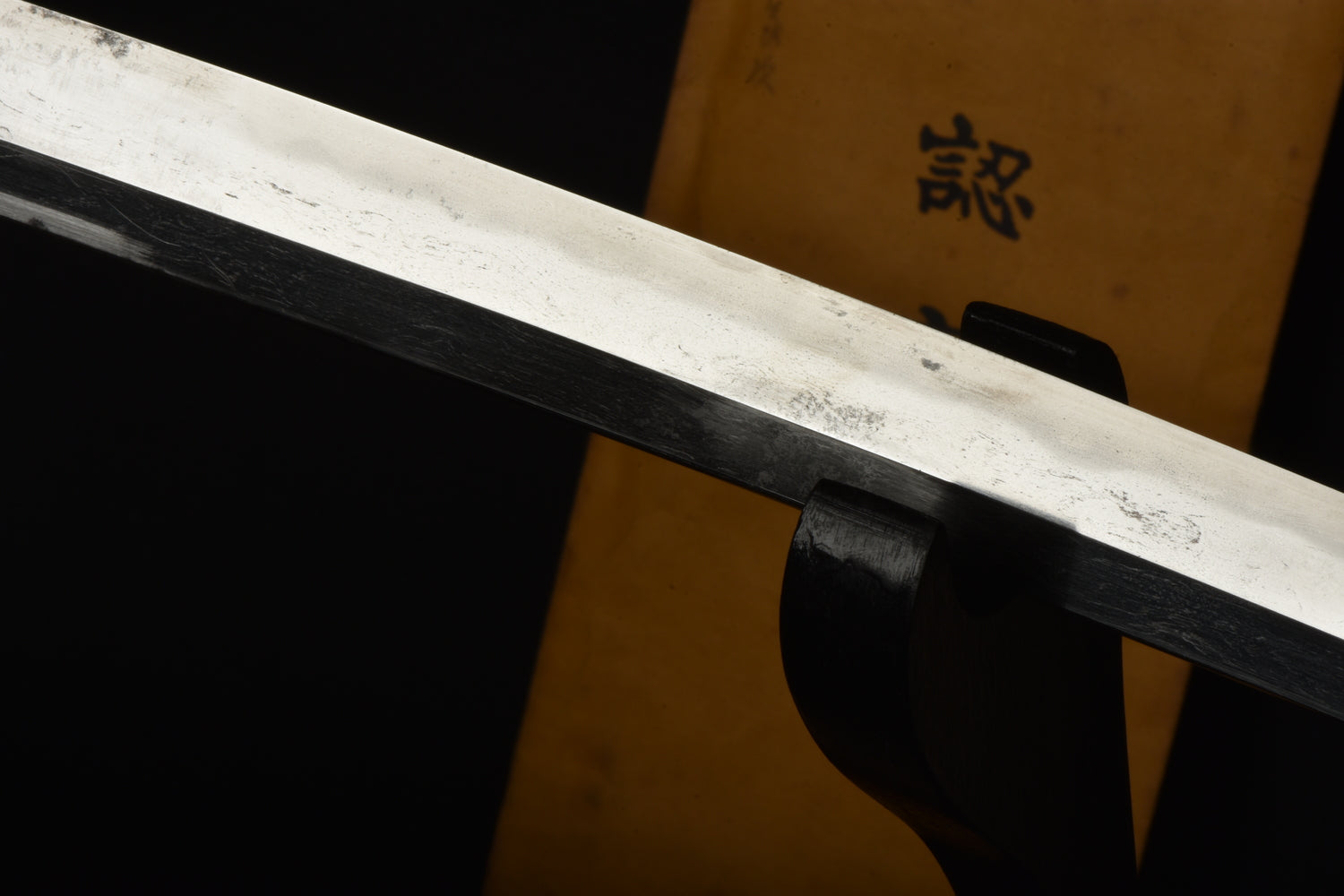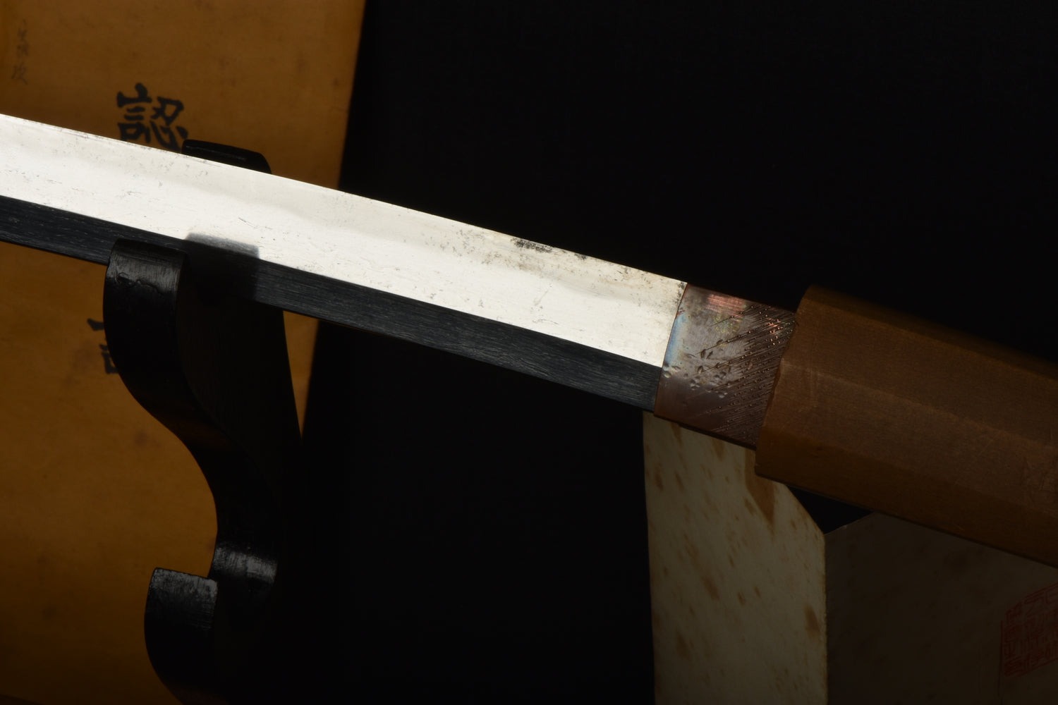 IETSUGU (家次), Kōji (弘治, 1555-1558), Kaga – “Ietsugu” (家次), “Kashū-jū Fujiwara Ason Ietsugu saku” (加州住藤原朝臣家次作), “Kashū Fujiwara Ietsugu saku” (加州藤原家次作), Hashizume school, Kaga-Aoe, we know blades from the Tenbun (天文, 1532-1555) to the Eiroku era (永禄, 1558-1570), suguha mixed with chōji, gunome-midare, wazamono, chū-jō-saku