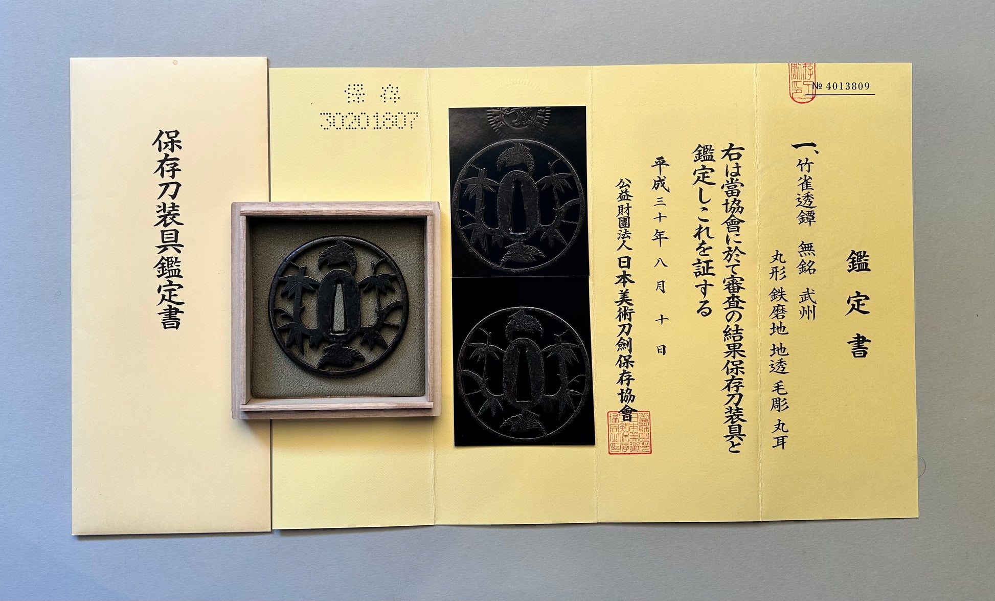 Tsuba - Būshū, Bamboo Sparrow - Take Tori, Antik Japan NBTHK HOZON