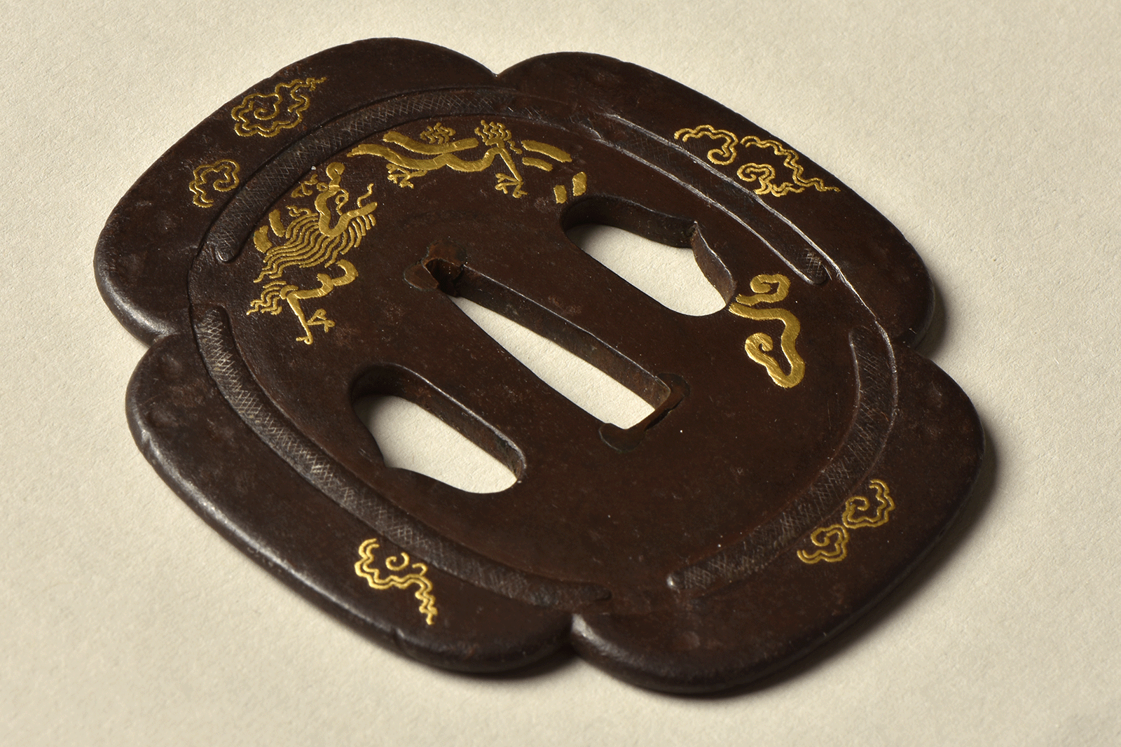 Tsuba: "Unryu, Moji chirashi"(Dragon, 5 characters)