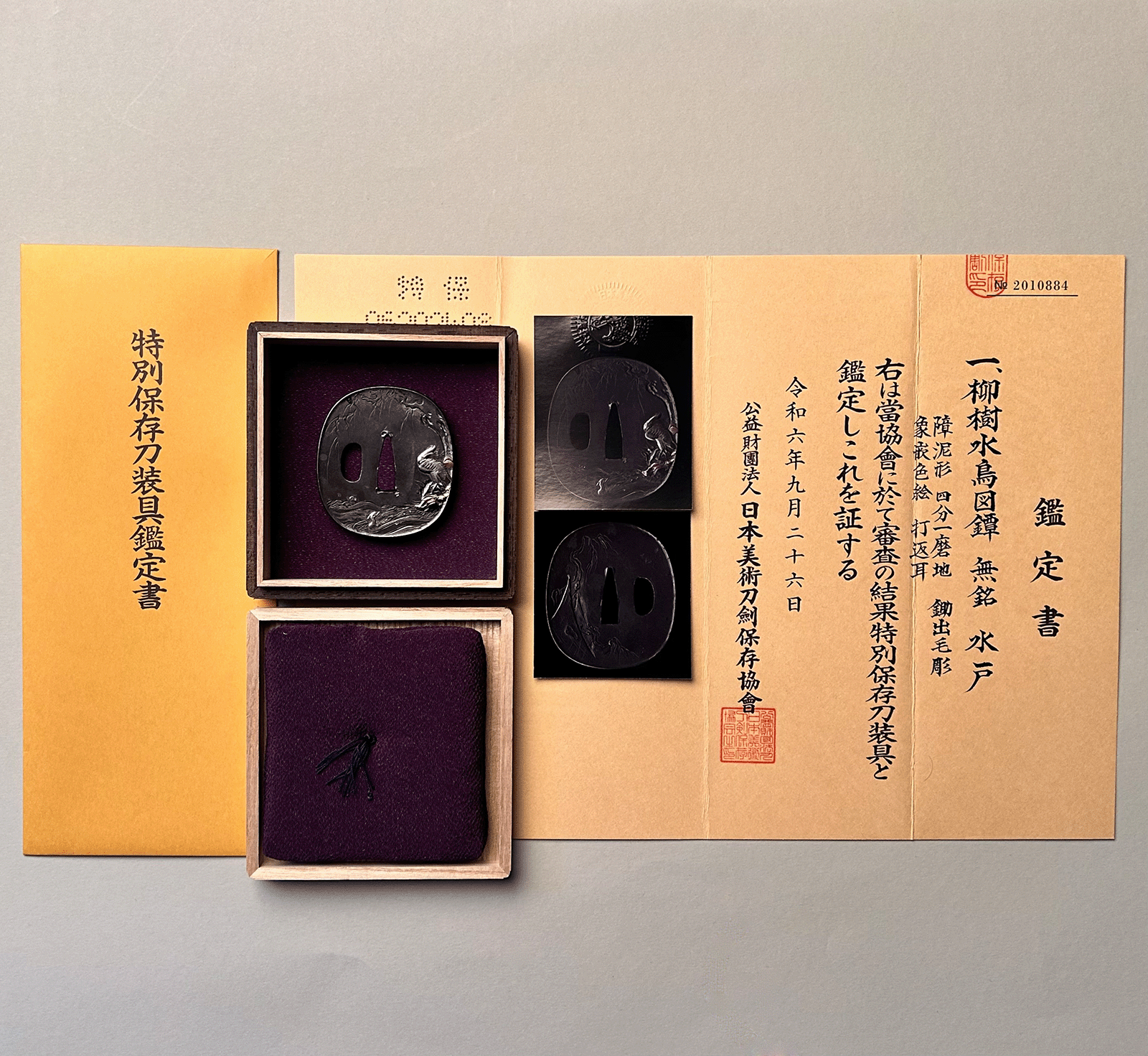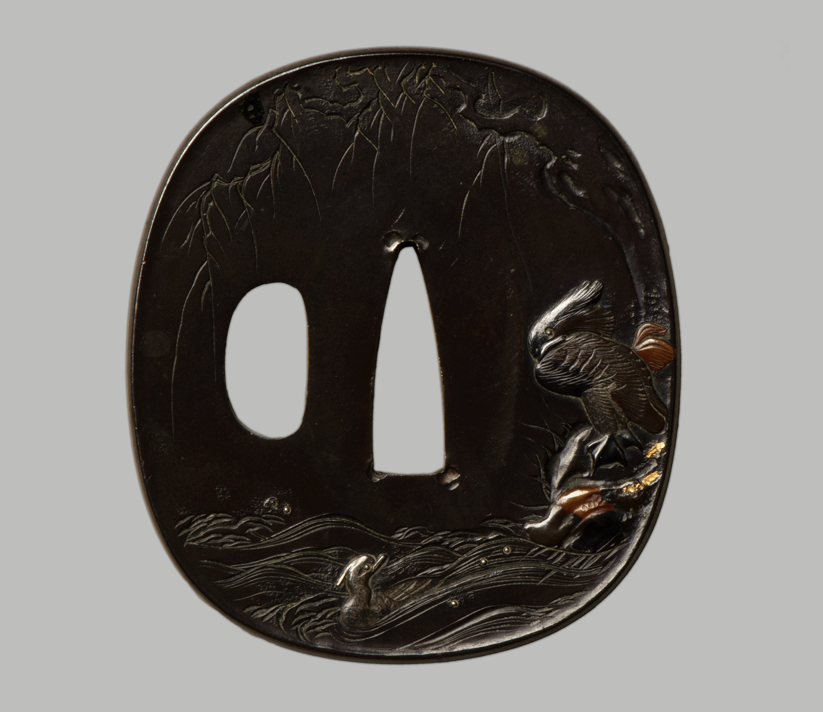 - Tsuba - Edo Mito 無銘(水戸) Willow and waterfowl - NBTHK Tokubetsu Hozon
