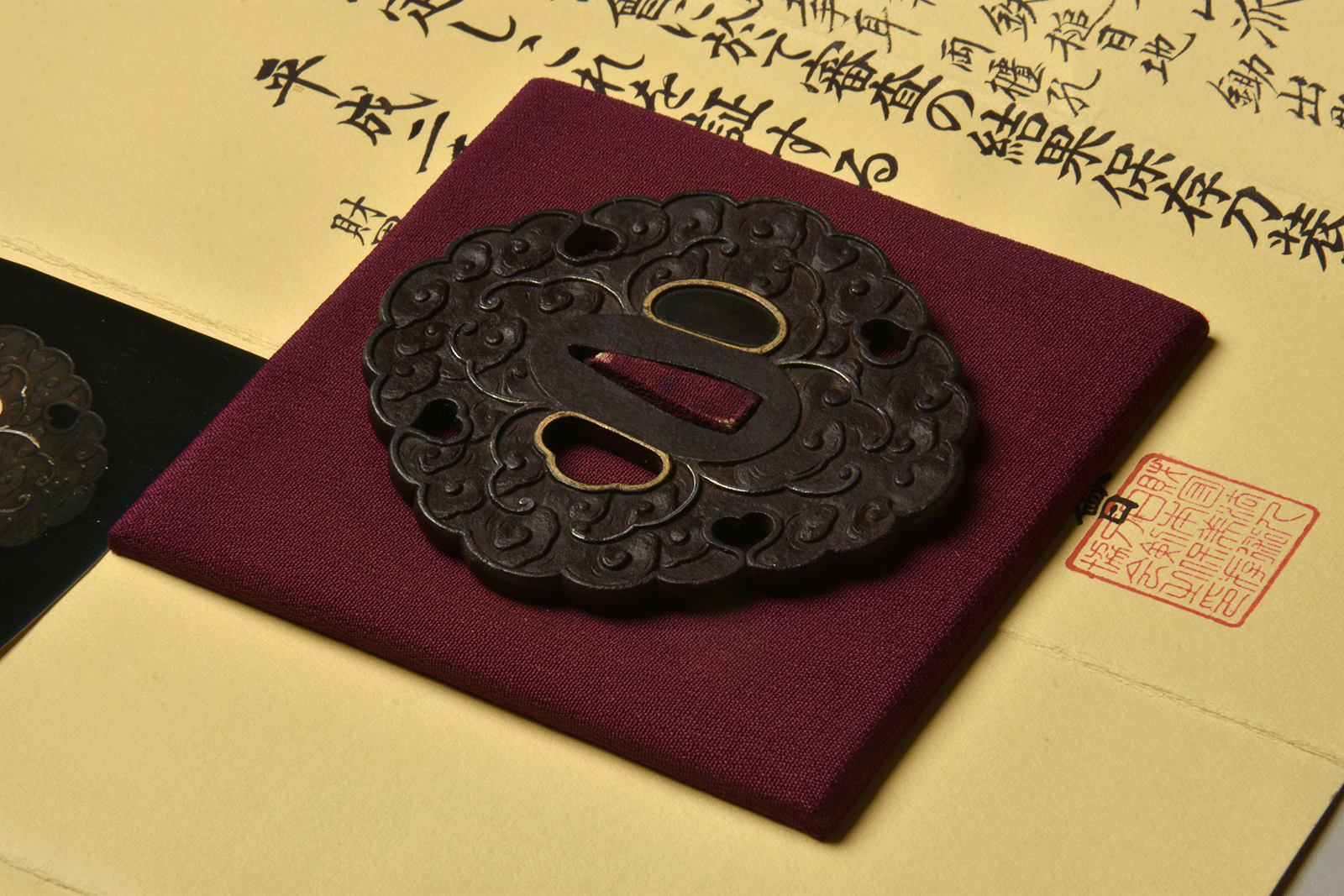 Tsuba - Futakoyama kumo-mon (雲文) NBTHK Hozon certificate