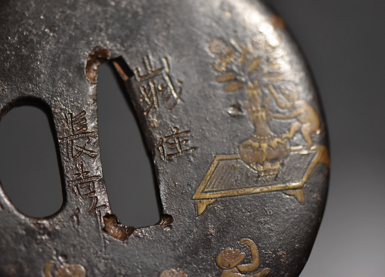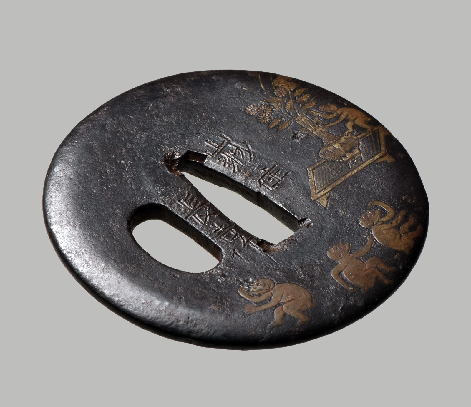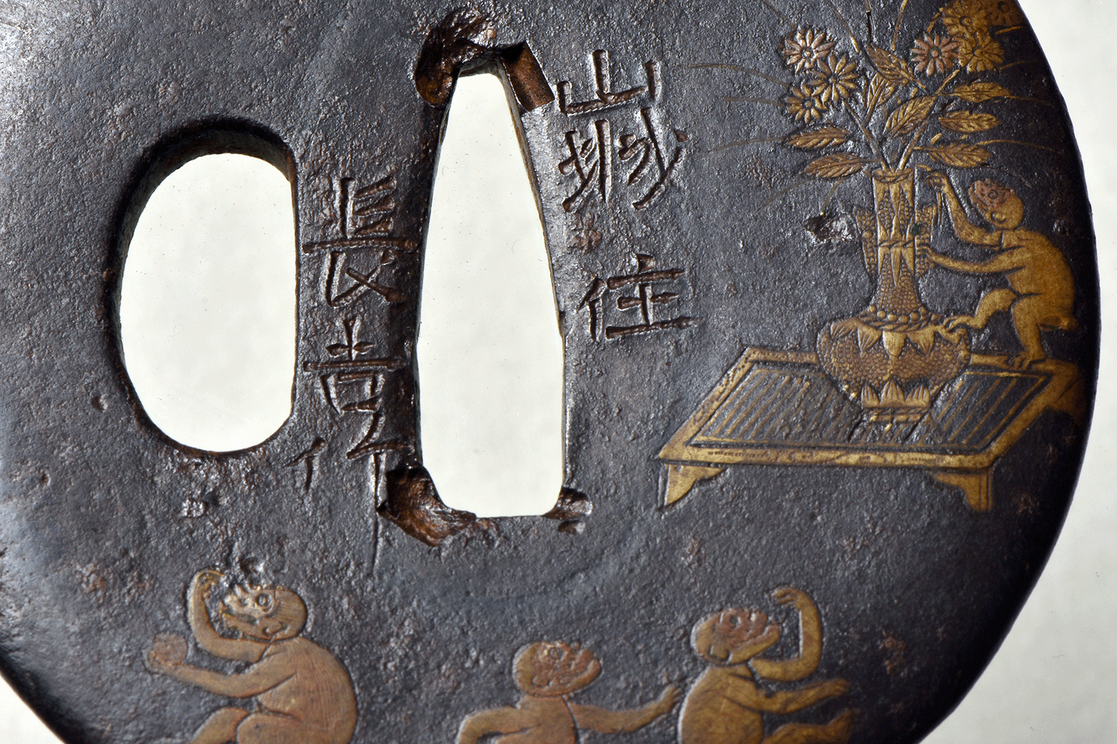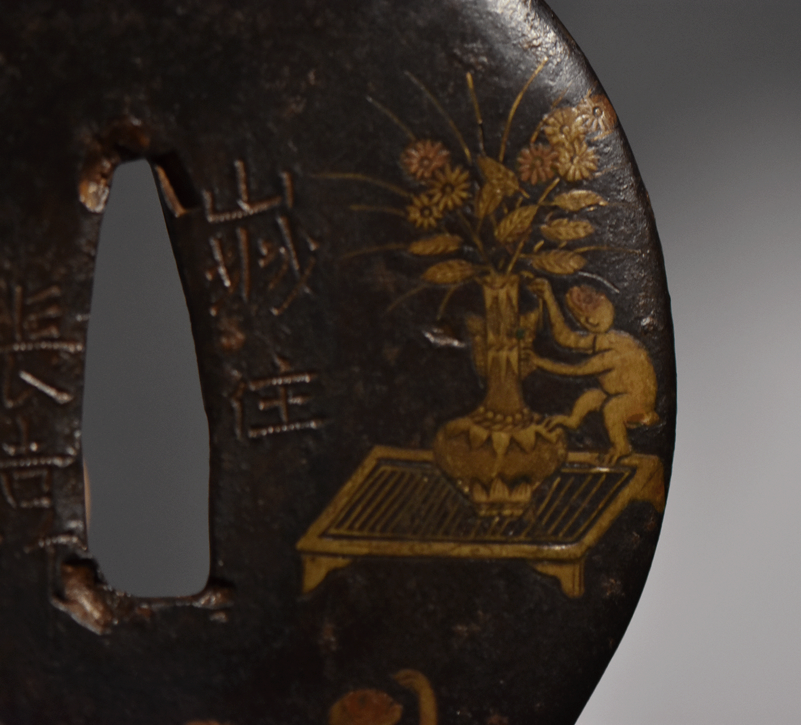 This Tsuba is a masterpiece - look at the details of monkeys and the vase on the desk.
